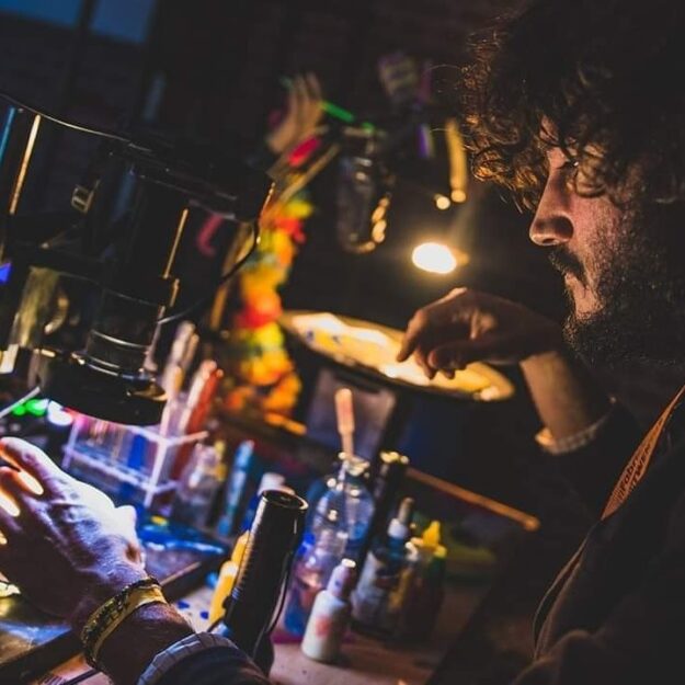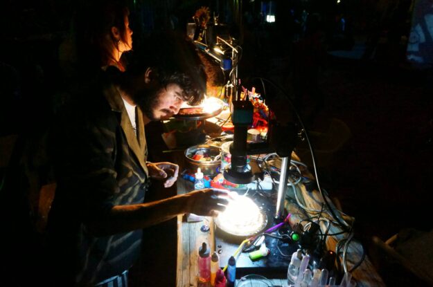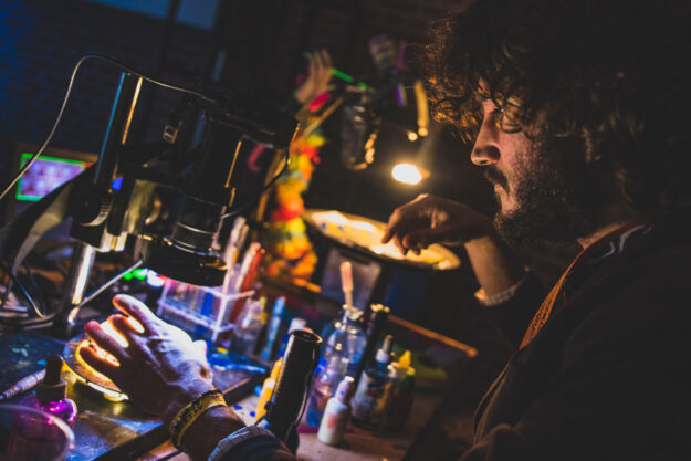 The Polymer Experience is an audiovisual show that combines the live set of electronic music from Polymer (Daniel Maalman, Netherlands) with the live microscope and Kaleidoscope visuals from Cosmic Visuals (Jan Barceló & Marta Lofi, Spain).